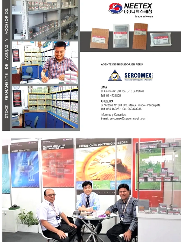 Desde el año 2013 somos agentes exclusivos en Perú de la marca NEETEX de de la compañía coreana Neetex Knitting Needles Co.Ltd. que produce todo tipo de agujas para máquinas de tejido de punto.